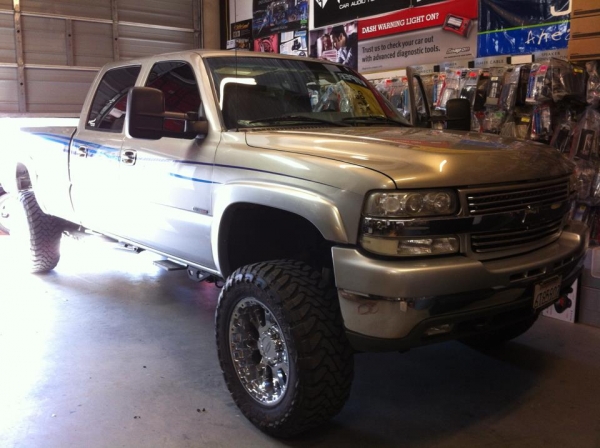 Chevy getting a custom double din mod at MCA in Lancaster, CA